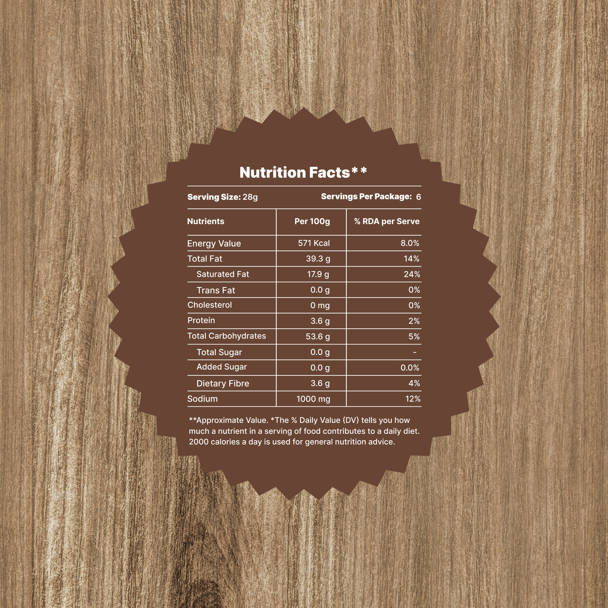 Raw Banana (70%), Edible Vegetable Oil (Palmolein), Iodized Salt, Black Pepper, Spices & Seasoning