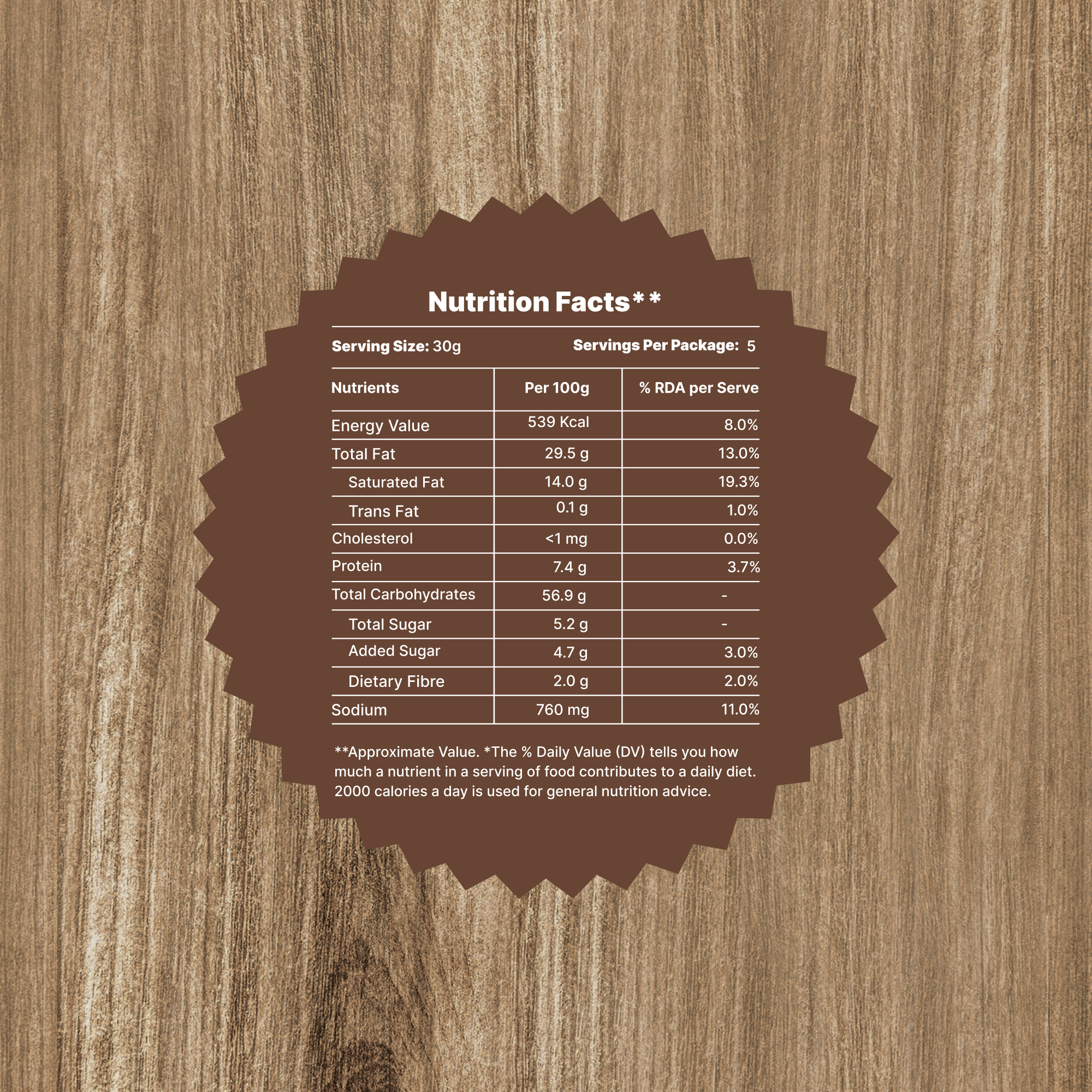 Get ready for a flavor explosion with Snackkal’s Masala Potato Chips! Crafted from premium potatoes and tossed in a bold blend of Indian spices, each chip packs a punch of tang, spice, and crunch. Whether it’s tea time or TV time, these spicy chips will keep your taste buds dancing. Made with care, packed for freshness.