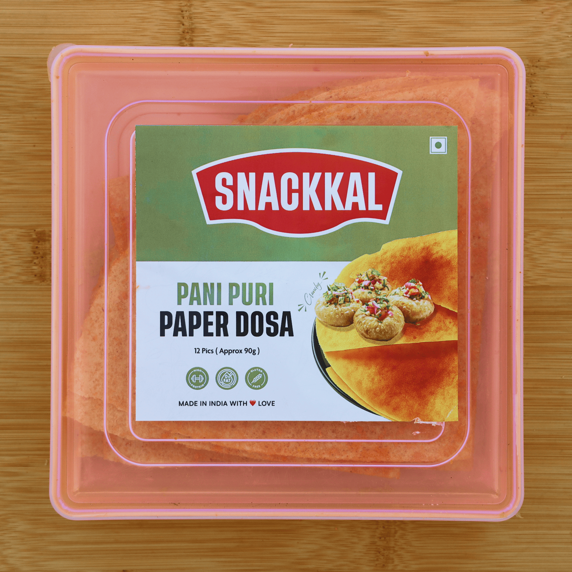 Street food meets crispy delight in our Pani Puri Paper Dosa. Made with fine rawa and gram flour, this ultra-thin snack is infused with zesty pani puri masala and sweet-tangy tamarind chutney powder. Every bite delivers that iconic golgappa flavour, but with the irresistible crunch of a paper dosa. A perfect fusion for those who love the magic of Indian street food in a travel-friendly snack.